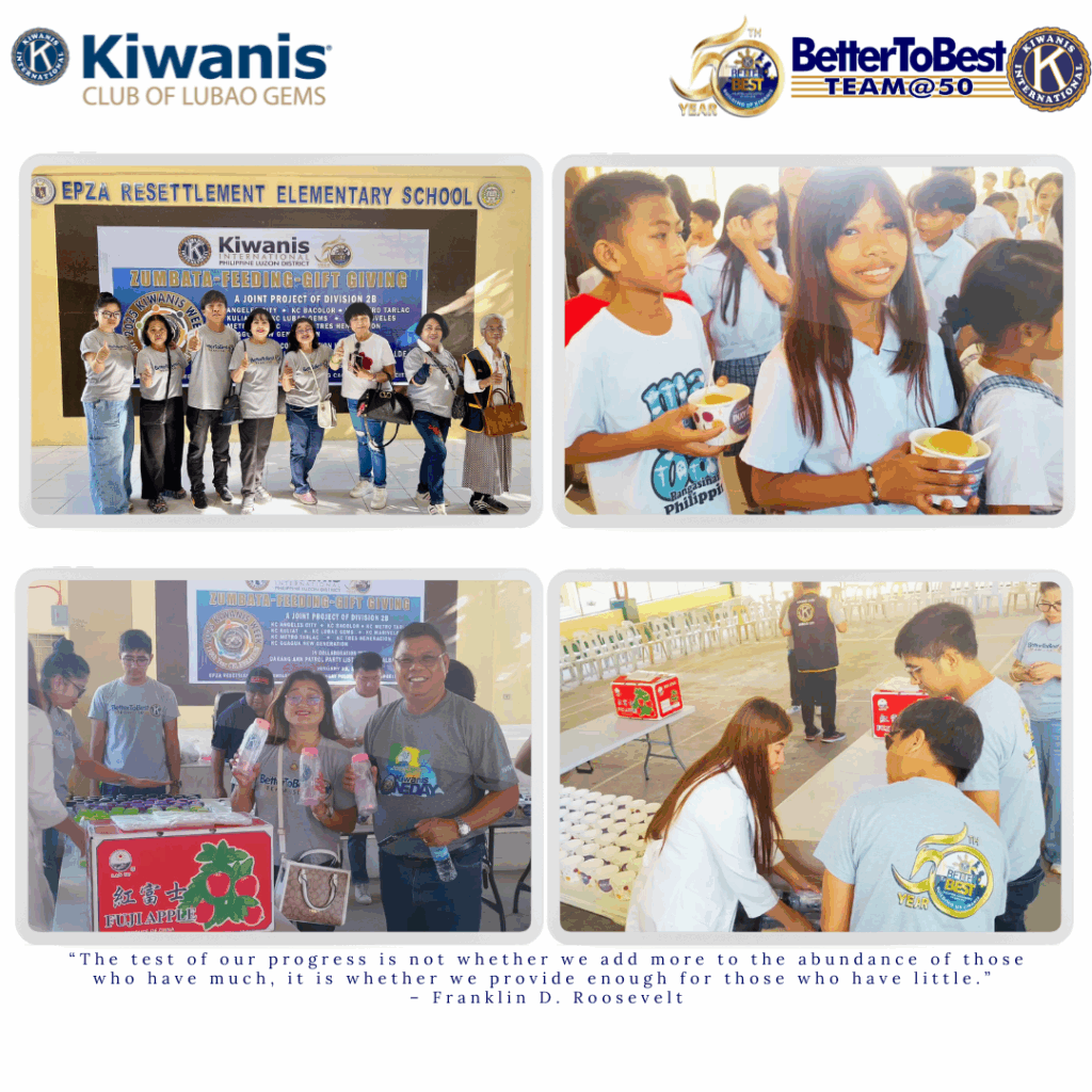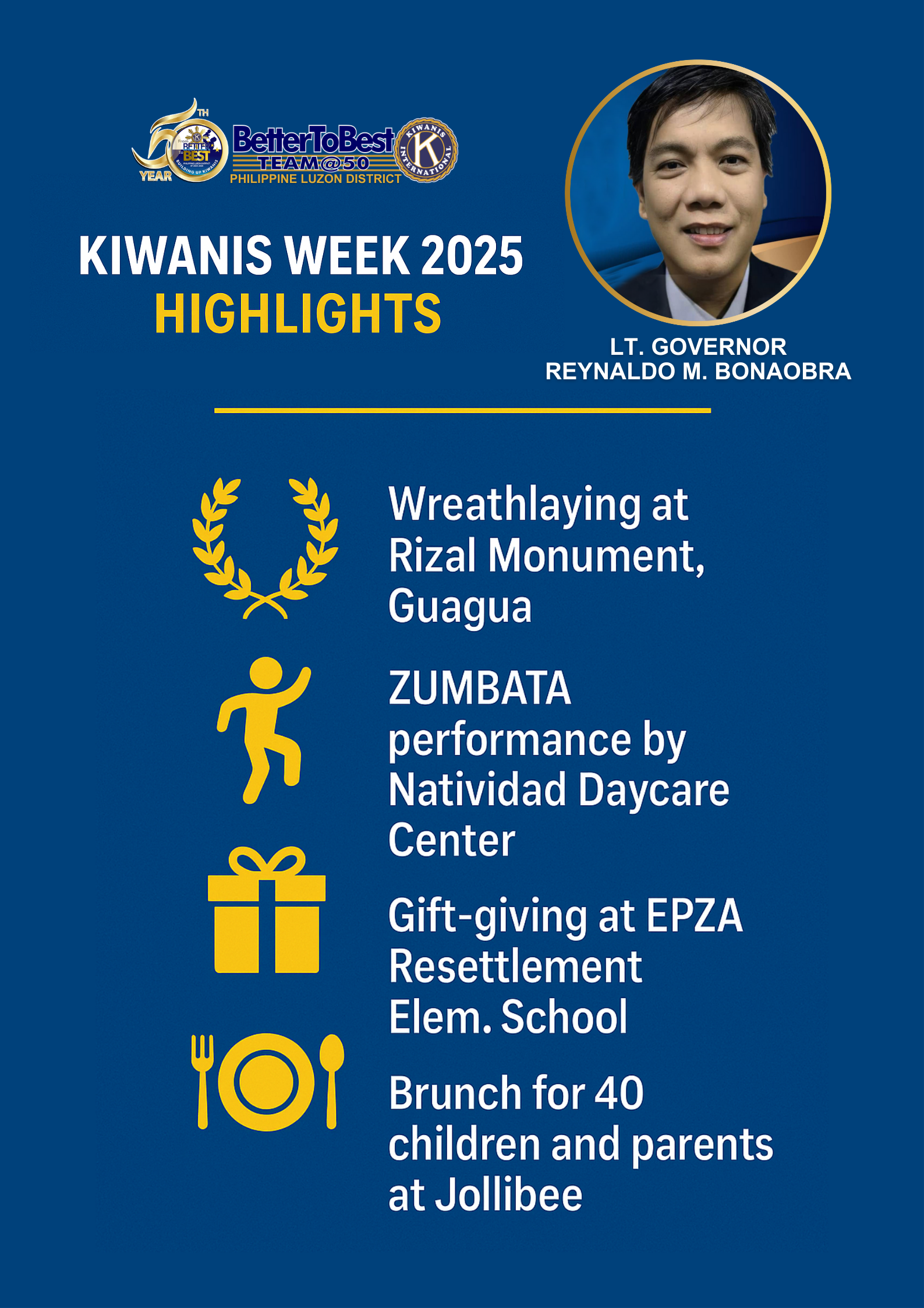 Category: Blog Post Tags: 110th Kiwanis anniversary, bettertobest, Division 2B Kiwanis Clubs, EPZA Resettlement Elementary School outreach, kidsneedkiwanis, kiwanis club of lubao gems, Kiwanis feeding program Angeles City, Kiwanis International 110th anniversary, Kiwanis service projects Pampanga, Kiwanis Week 2025, Pampanga community service events, Wreathlaying Jose Rizal monument, ZUMBATA children’s event